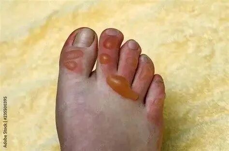 接诊的皮肤性病科副主任医师钟剑波发现,柯女士双脚布满大小不一的水泡,创面泛红、周围红肿明显,确定她为浅二度烫伤,烫伤范围主要集中在脚趾位置。