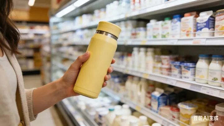 几天前,柯女士像往常一样去超市采购。走到乳制品区时,她一眼就看到了自己常喝的某个酸奶品牌正在搞促销活动,只要满一定金额就送定制保温杯。
